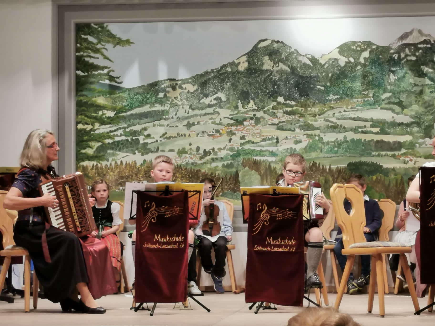 Fischbachau – Bei der Musikschule Schlierach-Leitzachtal war am Wochenende einiges geboten. Zunächst spielten die Musikschüler im vollbesetzten Klostersaal in Fischbachau zum Muttertagskonzert mit bayerischer Volksmusik auf. Die kleinen Musikanten brachten ihren Mamas und Familien einen bunten Strauß an Melodien auf einer breiten Palette von Instrumenten dar: von der „Reiftanz-Polka“ auf Hackbrettern und „Im Grandlmoos“ an Blockflöten über „Steyrische Tänze“ auf Gitarren, die „Enstaller Polka“ im Blasorchester und den „Teigitschgrabn Walzer“ am Akkordeon bis hin zu „Liebe Mama“ auf Ukulelen. Dafür gab‘s freilich viel Applaus. Tags darauf konnten sich künftige Musikschüler beim Tag der offenen Tür ausprobieren. An der Musikschule in Hausham boten die Lehrkräfte Gelegenheit, mal selbst an der Harfe zu zupfen oder in die Trompete zu blasen. Musikschulleiter Johannes Obermeyer freut sich über die „großartige Resonanz und viele Besucher“. Von 30. Juni bis 25. Juli können die jungen Talente, die Freude an einem Instrument entdeckt haben, bei den Schnupperwochen der Musikschule einen tieferen Einblick gewinnen. AG