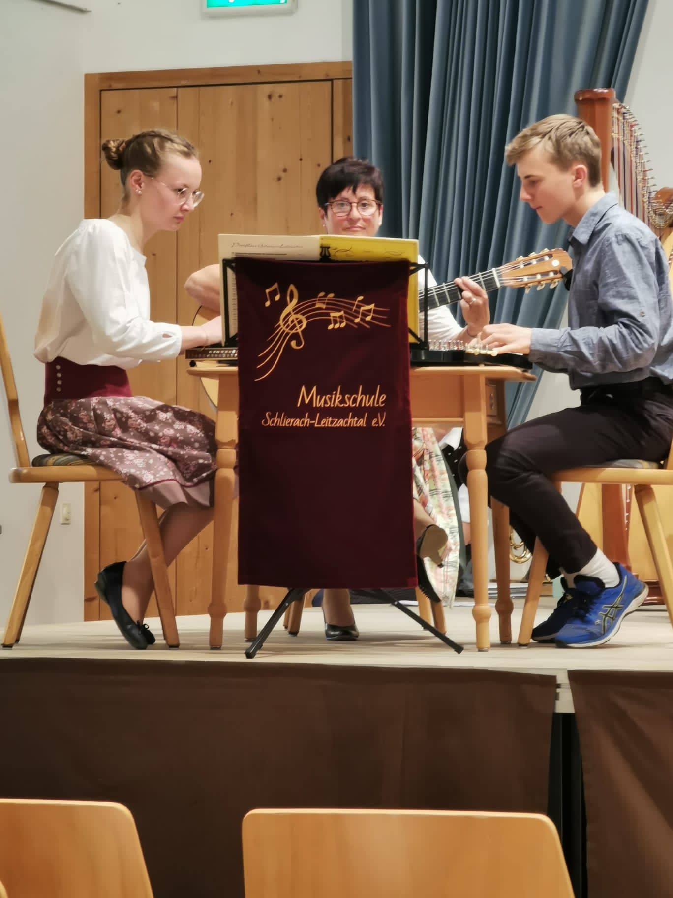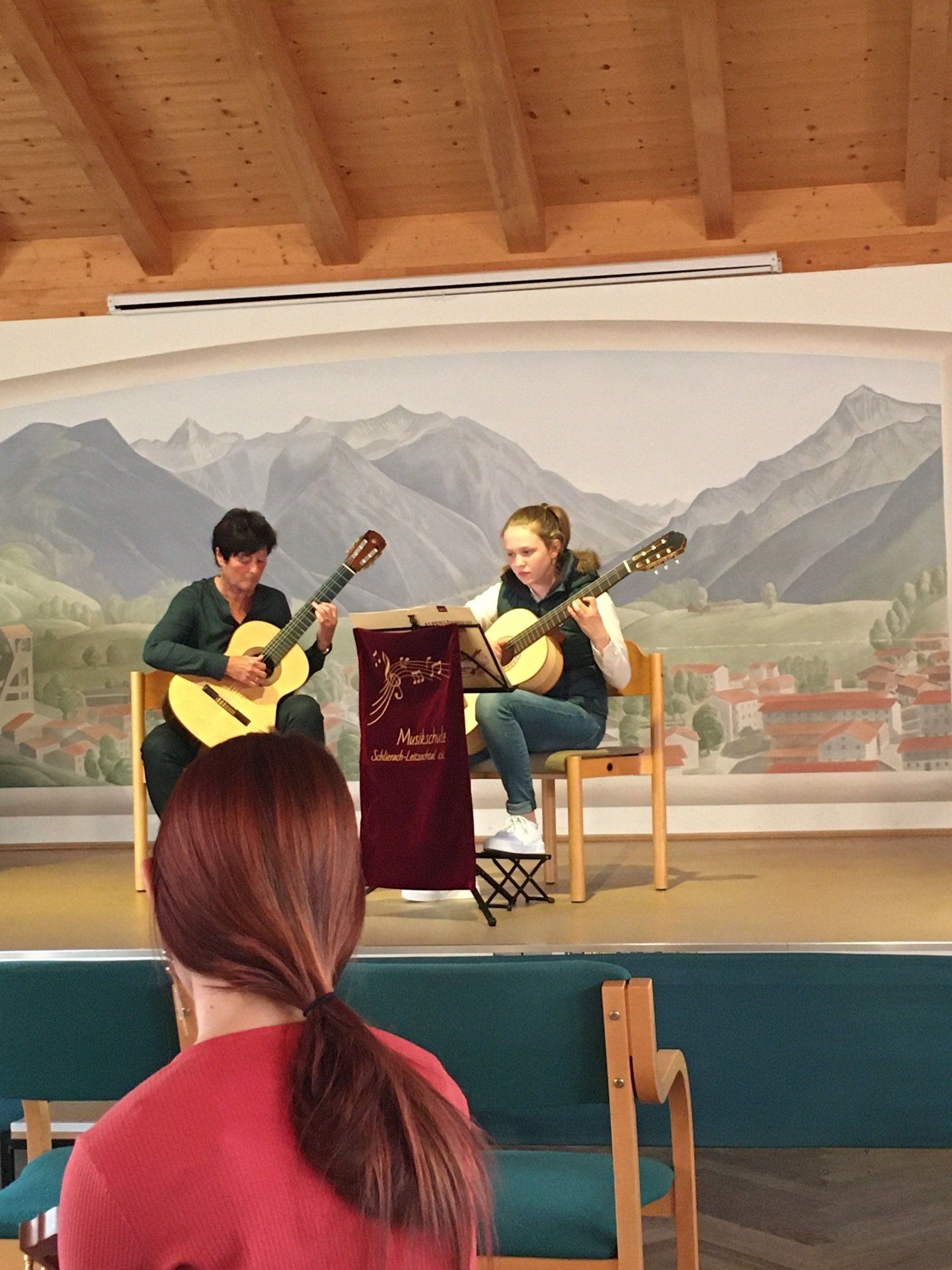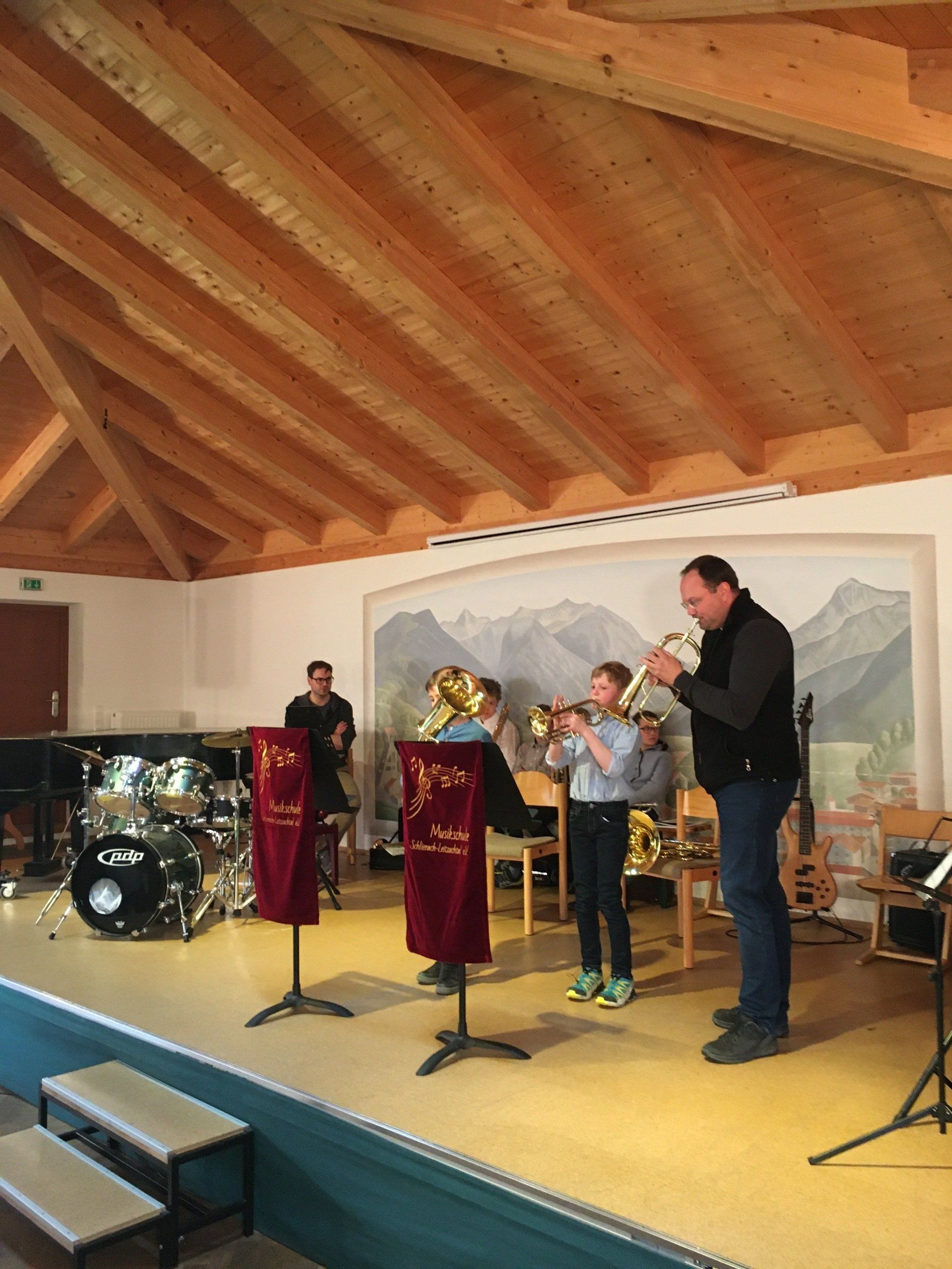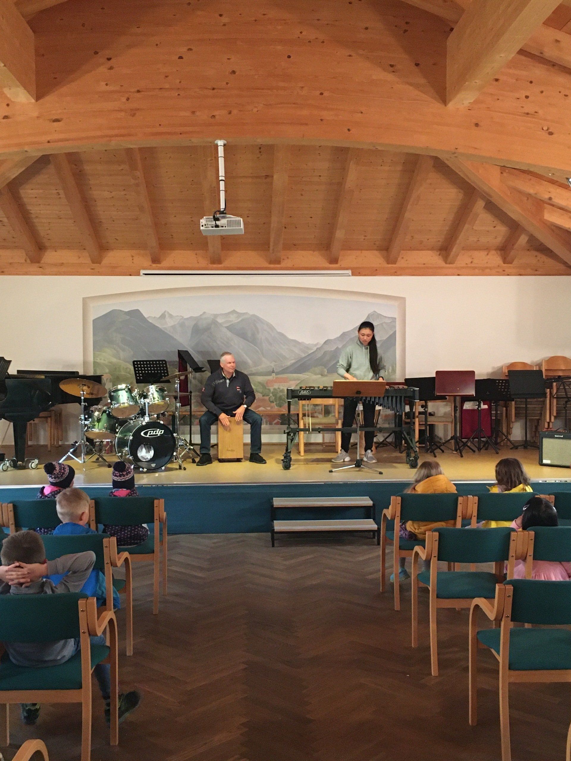 Momentan unterrichte ich in der Grundschule Neuhaus 14 Kinder in Dreier- und Vierergruppen. Wir treffen uns immer gleich nach Schulschluss in einem der Klassenzimmer. Das ist praktisch auch für die Eltern, weil sie dann nicht nachmittags noch woanders hinfahren müssen. Meine Kollegen an der Musikschule bieten diese Möglichkeit auch an anderen Schulen im Schlierach-/Leitzachtal an.